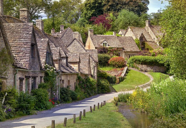 Bibury is a village and civil parish in Gloucestershire, England. It is situated on the River Coln, about 6.5 miles (10.5 km) northeast of Cirencester. A picture of Bibury is seen on the inside cover of all United Kingdom passports, making it the most depicted village in the world